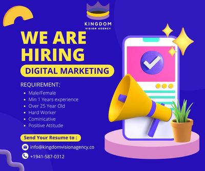 Kingdom Vision Agency is expanding and we are excited to welcome a dedicated digital marketing professional to our growing team. If you have a passion for creativity, online engagement, and helping brands grow, this opportunity is for you.